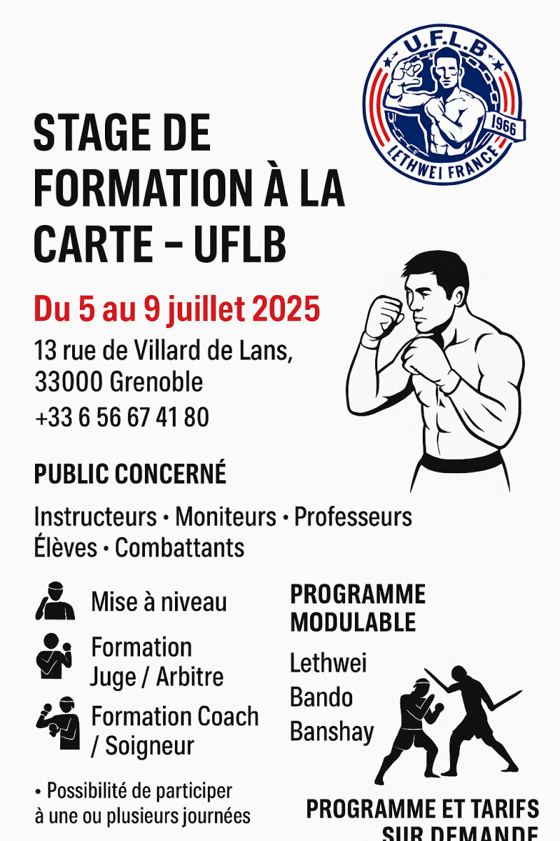 The WBTLF offers a structured instructor training program led by Master Alain-André Feschet, a 9th-degree black belt renowned for his expertise in traditional martial arts and combat sports. The program is designed for experienced martial artists aiming to become certified Lethwei coaches and to deepen their knowledge in Bando, Naban, and Banshay.